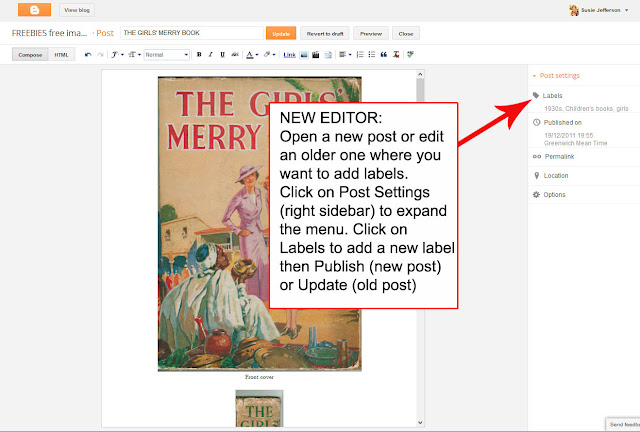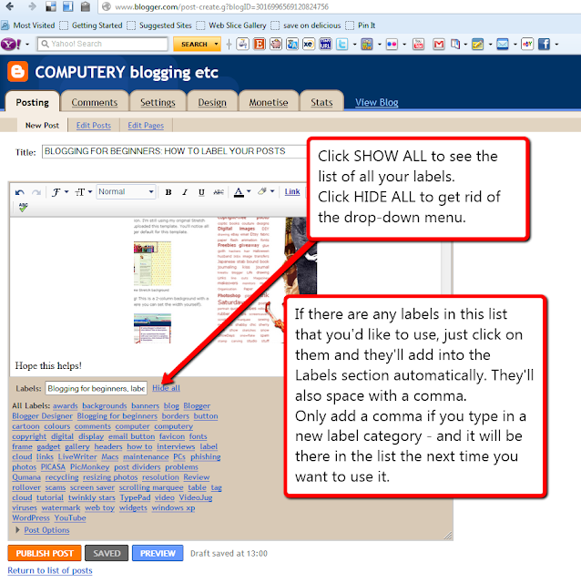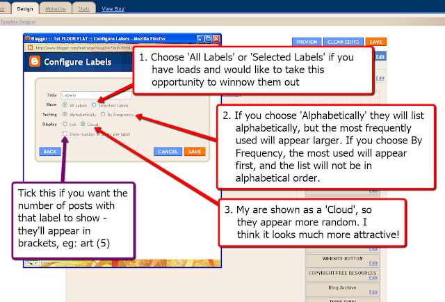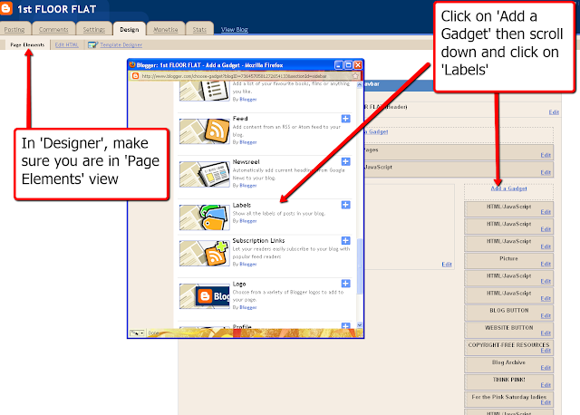 Label your posts in the little white 'Labels' box, just under your posting area. Just type them in, but make sure you separate each one with a comma, or you'll have one very long continuous one!