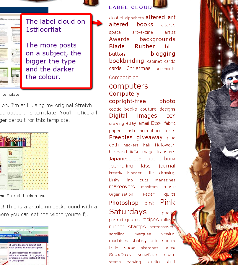 For example: you saw an ATC, and want to see more of them. If the link under the post has a label, eg: ATC, then you just click on it and a whole page of ATCs appear, as if by magic. Blogger shows every post with an ATC label, in one scrollable page. Brilliant!