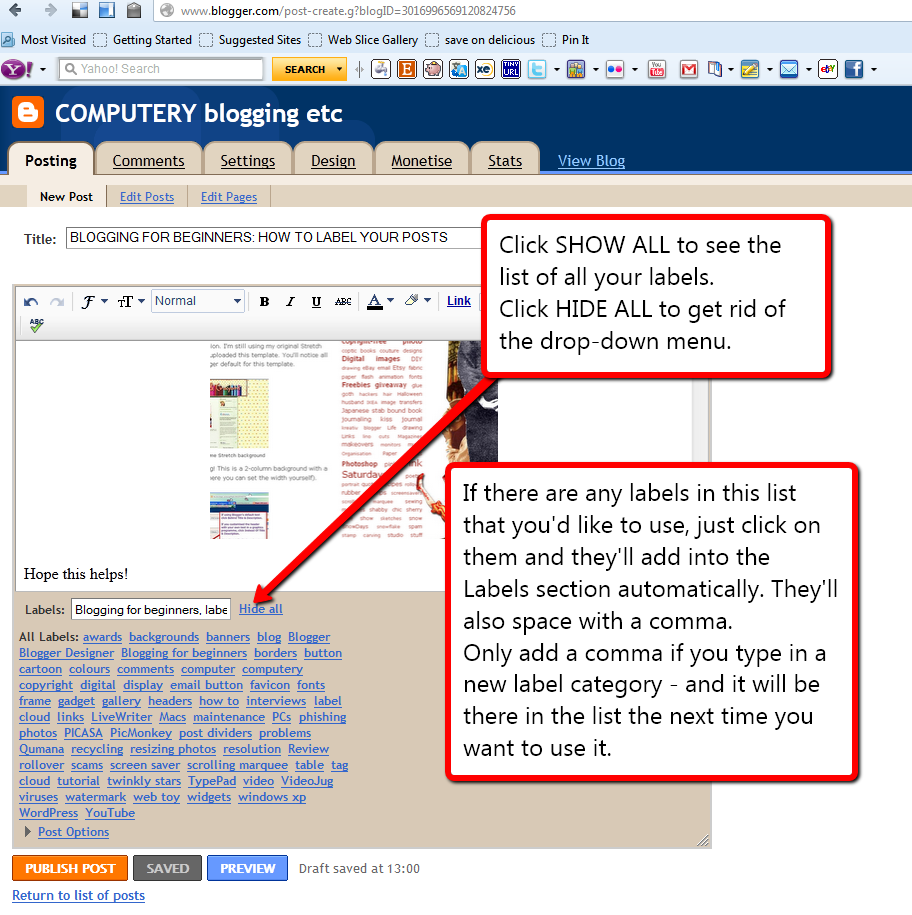 I've had a query on how to label your blog posts - and why you'd want to!